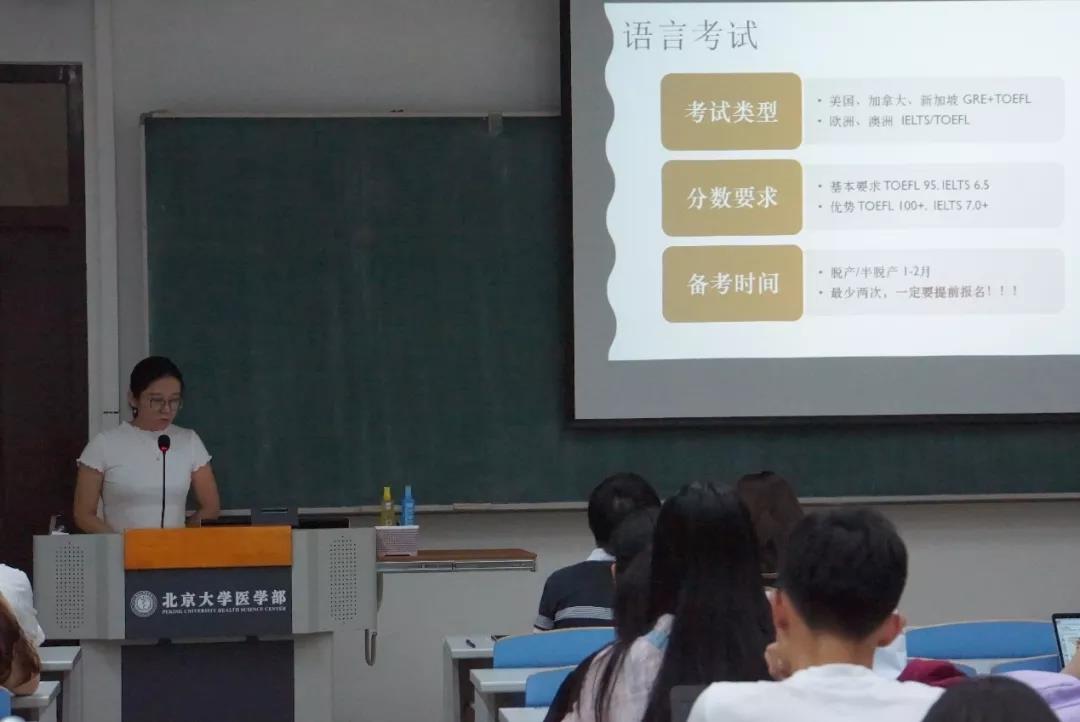 赵雨佳师姐即将去荷兰乌得勒支大学就读环境流行病学博士,演讲中师姐分别从申请前准备、语言考试、学校选择、申请资助、时间安排等方面分享了经验,还给大家分享了留学和语言考试方面的微信公众号。师姐以乌得勒支大学为例介绍了留学申请的大致过程。通过师姐详细的讲解,同学们对留学有了较为清晰的认识。