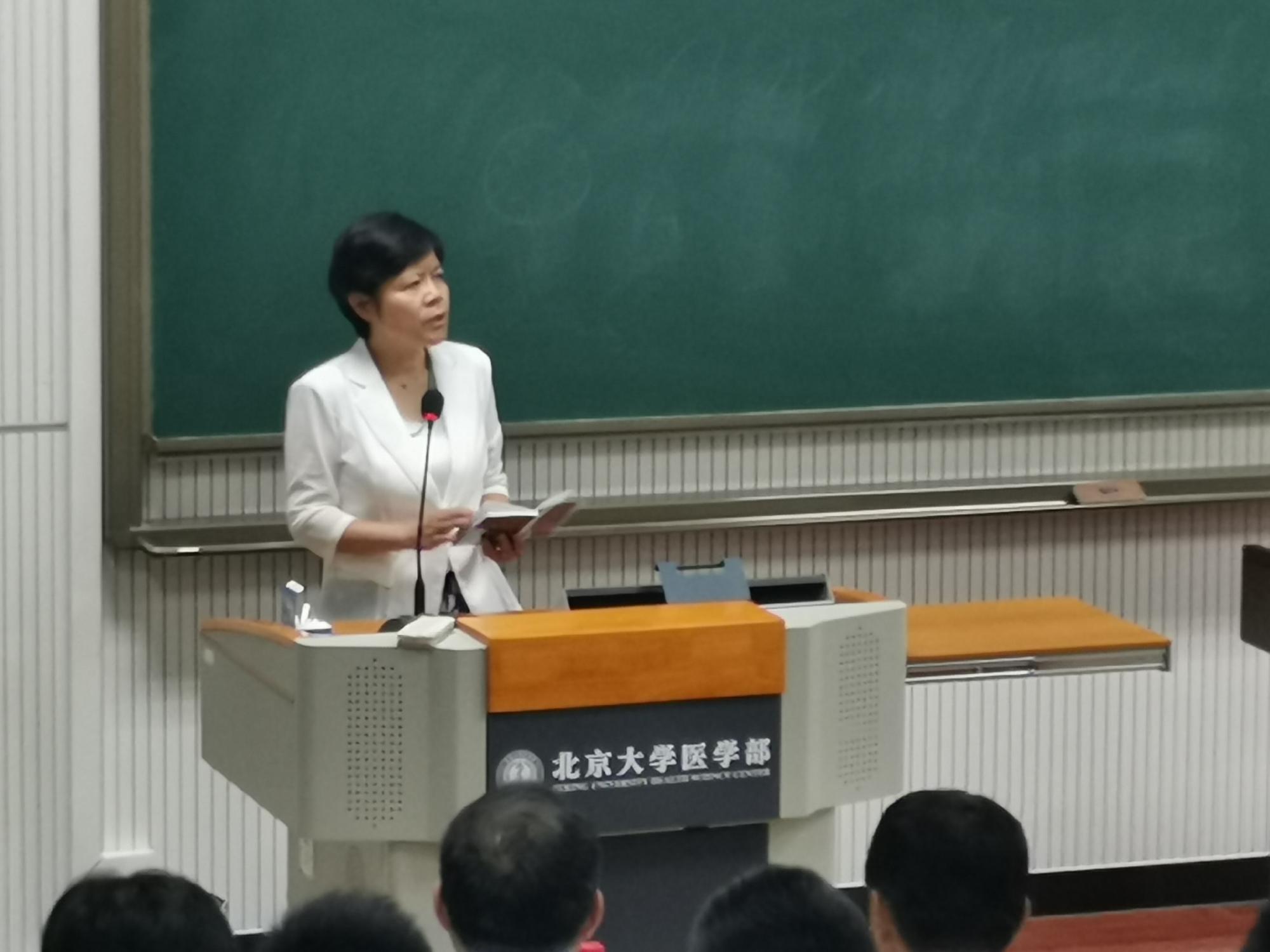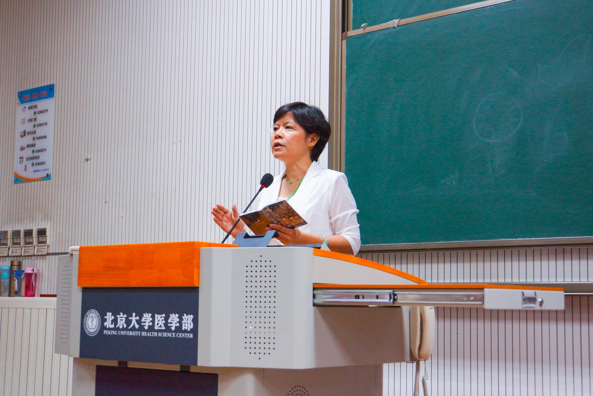 黄薇教授代表学院教师致辞。看到同学们朝气而年轻的面容,黄薇教授以“青春,自立,激情,梦想”进行了概括,更用“人文医学,大美预防,美美与共,北大医学”述说自己心中的预防医学。鼓励同学们要相信自己的理想兴趣和自己所具备的能力,一旦发现了自己的热爱就不懈的追求,一定能看到北大医学最美的境界。