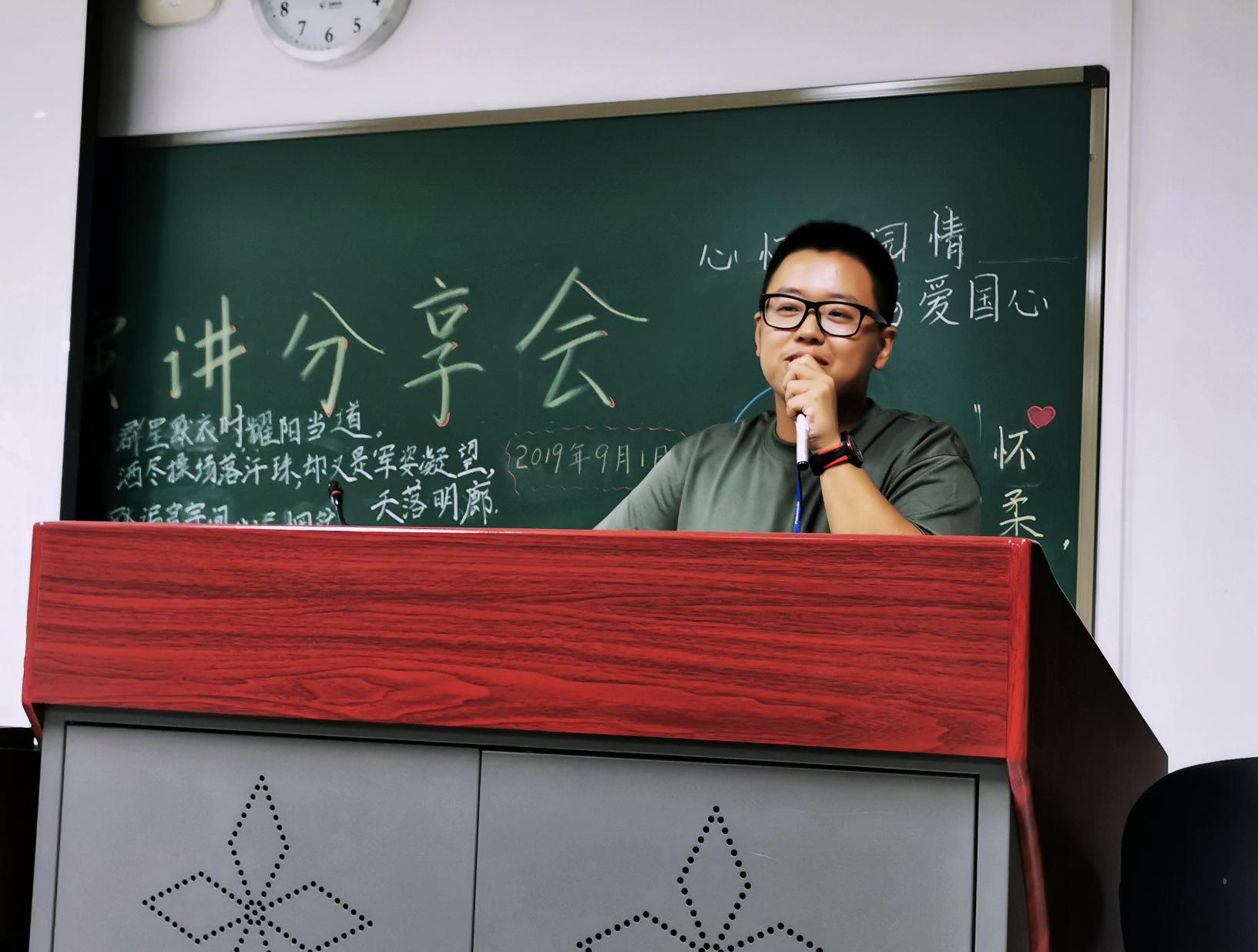 尨拉同学是四连队列示范班的成员,他自豪的向大家分享了自己在这段经历中的感受与收获。“大家在上场前都非常紧张,甚至有同学说比高考有过之而无不及。但是我们却信心满满,教官说他带出来学生在队列比赛中都是第一,我们也会是。但是上场后一开始指挥员的失误却令所有人乱了阵脚”他坦言自己在那一瞬间心态崩了,“但是大家迅速调整,完成了演示,结束后大家没有一个人埋怨指挥员,而是集体为自己加油。”尨拉同学感慨的说,自己在短短的一天感到了集体的团结力量。“在听到四连是队列评比第一名时,我们都沸腾了,还好没有给教官丢人。”