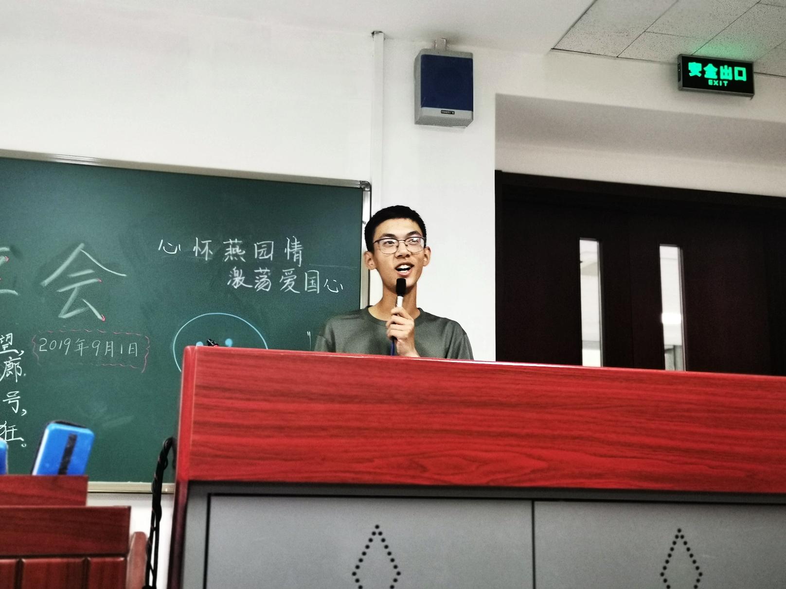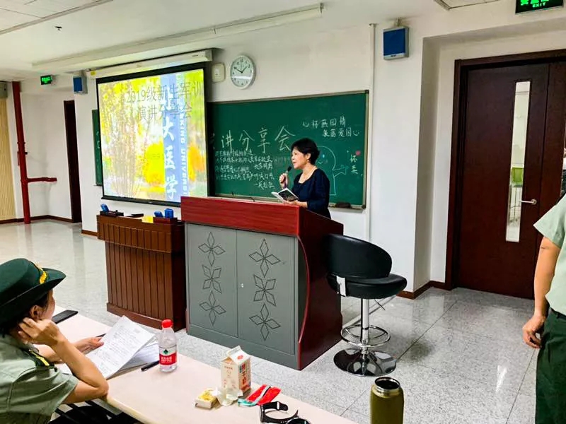 军训虽苦,但是12天后最让同学们难忘的还是苦中作乐的回甘。刘星宇,窦子昂和高誉阳同学用幽默调侃的语言化辛苦为快乐,分享了18人大寝室中所发生的令人捧腹大笑又无可奈何的趣事,赢得了大家的笑声与掌声。付瑞晟同学用独特的思维与视角,向大家讲述了自己在操场休息区所观察到的基地。他在休息时间用自己的双眼细腻的领略着基地的一切,看天上的云卷云舒,看操场旁的银杏树,看宿舍楼前的花花草草。“我发现我们的基地中有很多5:3的比例,操场旁的树木长宽数量比是5:3,垃圾桶,井盖的比例是5:3,旁边工厂楼墙上的玻璃长宽数量也是5:3”,付瑞晟这一独一无二的角度,令在场的同学发出阵阵惊叹。 而预防班级中唯一一位在军训期间过生日的同学黄雅婷,更毫不掩饰自己的感动,她表示这次的生日是自己过的最印象深刻的生日,她十分感谢大家为她唱的生日歌和送的小礼物,这让她在初入燕园时就感到了大家庭的温暖。