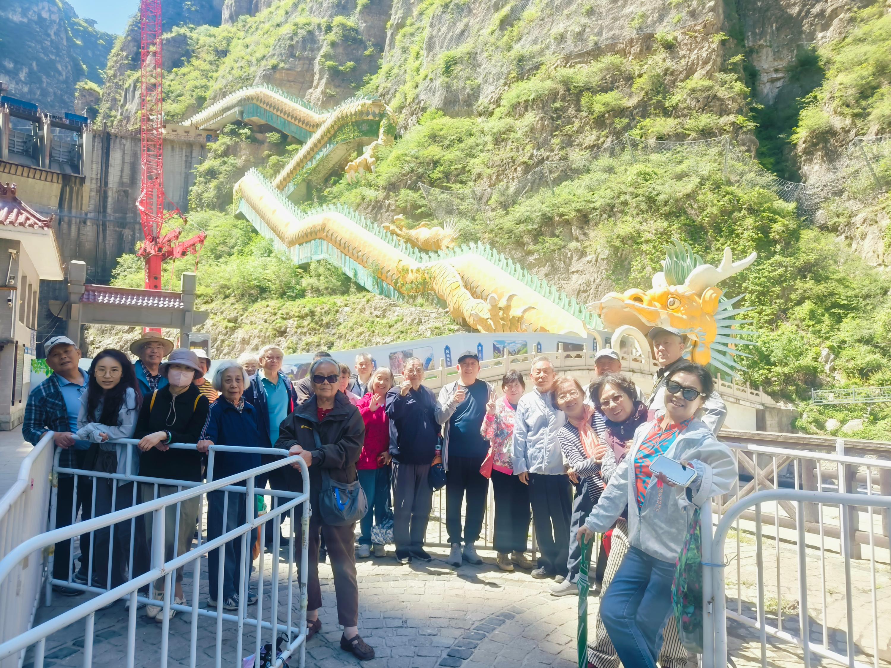 午餐后一行人到龙庆峡景区参观。龙庆峡作为“京郊小漓江”,这里峰峦叠翠、碧水蜿蜒,两岸崖壁上“神笔峰”“镇山如来”等自然奇观若隐若现,仿佛在诉说着岁月的故事。老同志们在工作人员搀扶下登上游船,随着汽笛轻鸣,游船缓缓驶入峡谷深处,在水面遨游,风景像徐徐展开的画卷,两岸的山峰从自己身边慢慢推向身后,河水忽急忽慢,让人流连忘返。