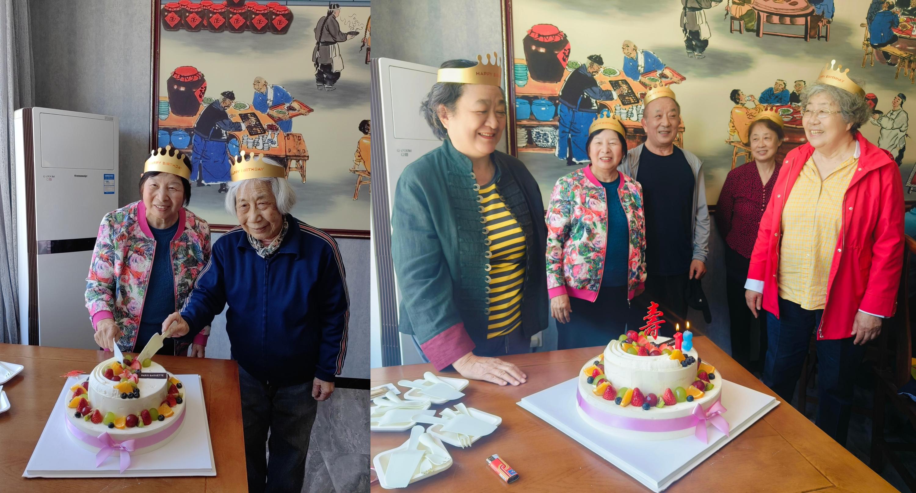 中午12时,老师们在龙庆峡附近餐厅用餐,期间,一场精心策划的“集体生日会”悄然拉开帷幕——桌上摆放着一个大大的缀满水果的蛋糕,健康长“寿”的“寿”字格外醒目,这是学院为4、5、6月份过生日的6位离退休老师准备的惊喜,其中89岁的退休老师苑沛青和今年刚满80岁的洪世欣两位教师,成为当天最受瞩目的寿星。“祝您生日快乐,祝您生日快乐……”在全场合唱的生日歌中,苏鸿副书记为老师们戴上寿星帽,亲手切下第一块蛋糕。“没想到学院还记得我们的生日,以后每年我都要参加集体活动!”关予北老师格外兴奋地说道。