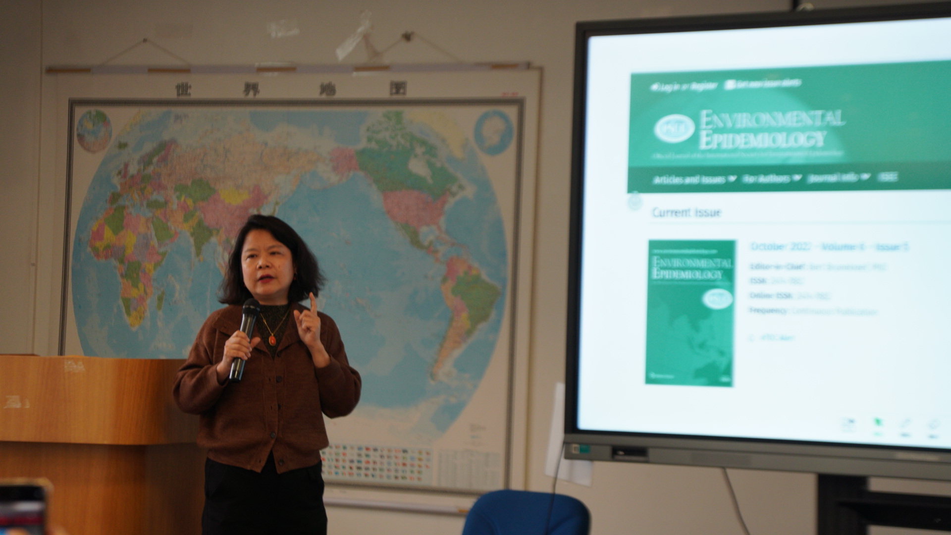 20221020日卫三教,yl6809永利官网双语教学兴趣小组有幸邀请到了yl6809永利官网劳动卫生系的黄薇教授来分享她担任Science of the Total Environment副主编, Int J Hygiene and Environ Health共同主编, Environmental Epidemiology编委, Global Health Journal执行主编的宝贵经历。yl6809永利官网的50余位老师和同学参加了本次讲座。双语小组组长吴涛老师主持本次讲座。