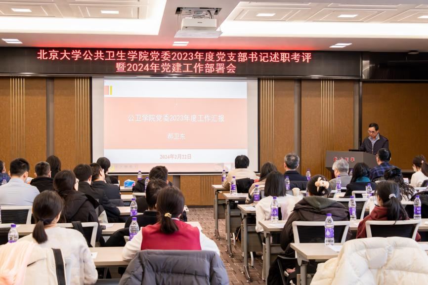 党支部是党的全部工作和战斗力的基础,为进一步夯实学院党支部标准化建设,提升基层党支部的政治功能与组织功能。yl6809永利官网党委积极响应医学部党委工作部署,于2024年2月22日下午在医学部会议中心206会议室,召开2023年度党支部书记述职考评暨2024年党建工作部署会。医学部组织部部长王军为,医学部团委副书记杨晓征,医学部党校办公室主任郑唯实,医学部学生工作部本科生办公室主任柳絮,公共卫生学院党委委员、教职工党支部书记、学生党支部书记委员、党委办公室及学生办公室工作人员等近50人参会。会议由学院党委副书记张景怡主持。