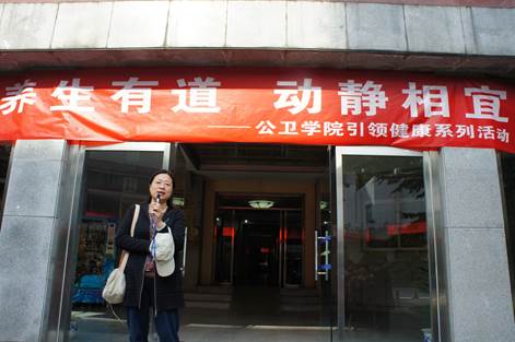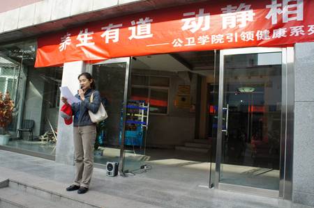 我院青年教师代表吴双宣读了活动倡议书:“健康生活方式的开始不分早晚,只要下决心行动养成习惯就会品尝到健康的快乐。当健康生活方式不再是口号而成为生活的一部分,你就真正掌握了长寿的钥匙,成为生命的主人。学院倡议大家积极参与到“养生之道,动静相宜”公卫学院引领健康系列活动中来!向着健康,出发!”