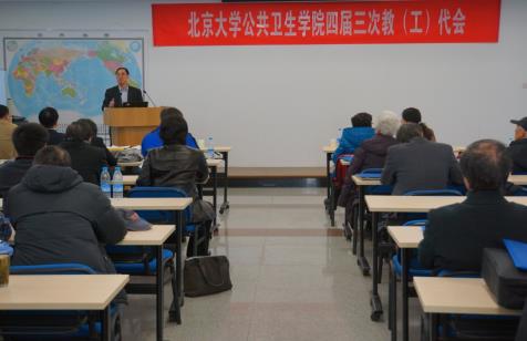 学院党委副书记、工会主席詹思延做了《公卫学院四届三次教(工)代会工作报告》。詹主席从不断完善教代会制度建设、倾听职工心声、做好职工的“娘家人”、不断加强工会自身建设提高工作水平等三大方面认真细致的汇报了学院一年来的教代会、工会工作取得的成绩和经验总结,并对2014年工作要点进行了介绍。