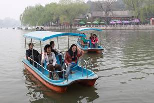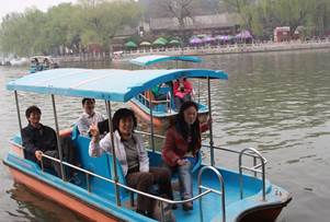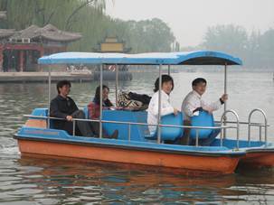 春光明媚,正是划船的好时候。2012年4月18日,为了迎接百年校庆的到来,公卫学院工会在北海公园举办了划船比赛,来自不同系室的近七十名老师,十支代表队参加了比赛。比赛的小船是脚踏的,每船4人,两人蹬,两人做拉拉队加油助威。学院工会主席詹思延教授吹响出发的哨音之后,10条船摇摇摆摆向终点进发了。