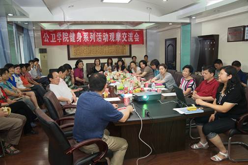 2011年6月23日上午医学部工会领导、各学院、医院工会主席一行来我院观摩交流“健康,就在脚下---公卫学院系列健身活动” 。学院工会委员、工会小组长等近40人参加了会议。