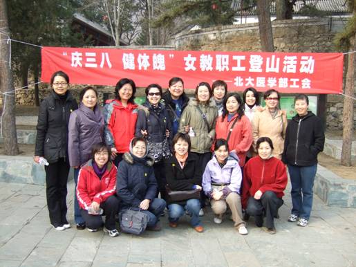 3月10号上午在春意盎然的阳光照耀下,我院二十多名女教工跟随医学部工会来到鹫峰脚下,大家先在此留影。