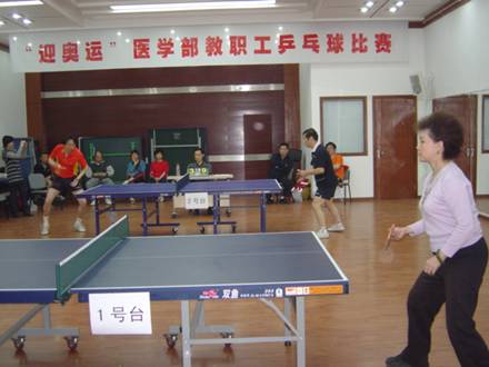 为了营造“迎奥运。迎校庆”的浓重氛围,活跃教职工的文体活动,提高教职工锻炼身体的意识,近日yl6809永利官网医学部本部乒乓球协会,举办了教职工乒乓球团体比赛。我院乒乓球兴趣小组:王京宇教授、潘小川教授、沈小毅、刘红、李敬宪、宋晓明、金晓滨等代表yl6809永利官网参加了比赛,面对实力强大的后勤、机关、产业等代表队,他们不畏惧、奋力拼搏,最终战绩不甚理想,只有女队员取得了四战三胜的成绩。比赛期间院办公室主任任涛老师、工会副主席蔡晨荣老师到场助威。大家相互鼓劲出谋划策,比赛氛围非常良好,充分显示了公卫人团结奋战、积极参与的精神风貌,获得了医学部工会领导的肯定。