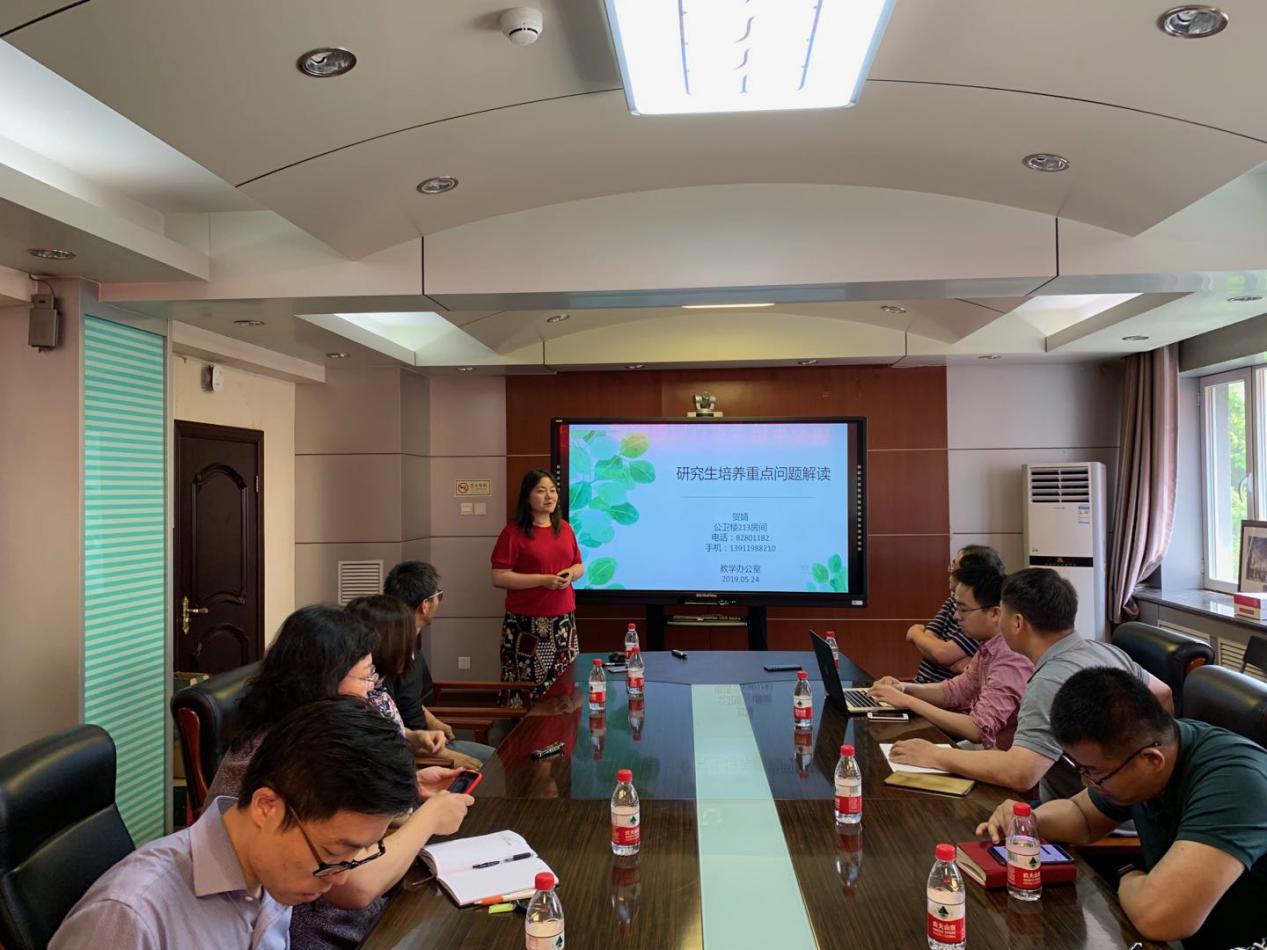 首先,贺婧老师就研究生培养重点问题进行介绍,分别从学生类型、招生类别、招生模式及时段、培养环节、答辩环节以及其中可能出现的问题一一解读。同时详细介绍了研究生培养工作的课程学习、论文工作、毕业审核等重点问题,最后强调了导师职责的重要性。使青年教师更加详细了解了研究生培养过程中出现的各种问题及应对方法。