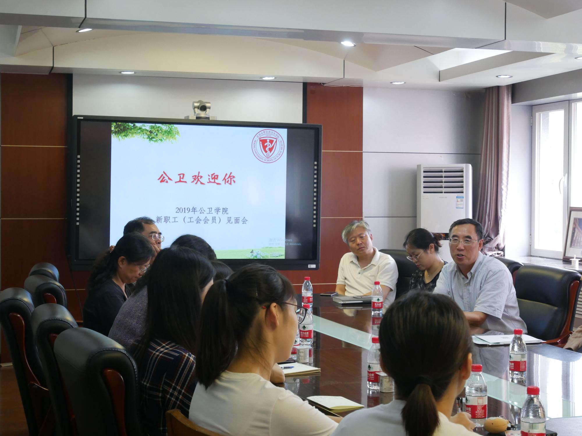 2019年9月9日公卫学院新职工暨工会会员见面会在学院220会议室召开。公卫学院党委书记郝卫东、公卫学院副院长:王培玉、王志锋、任涛,公卫学院党委副书记张景怡出席见面会。会议由公卫学院党委副书记、工会主席詹思延主持。来自公卫学院各系、室、所新入职职工和博士后参加见面会。