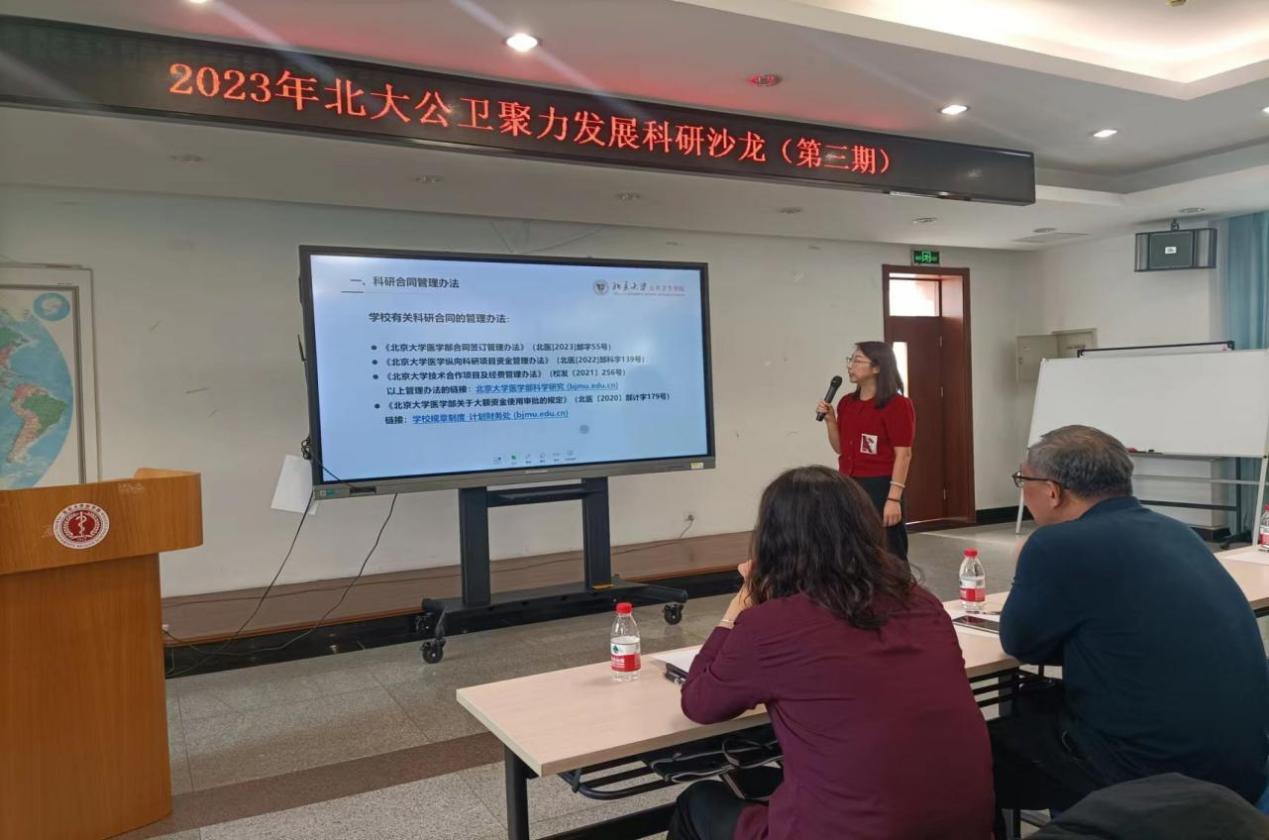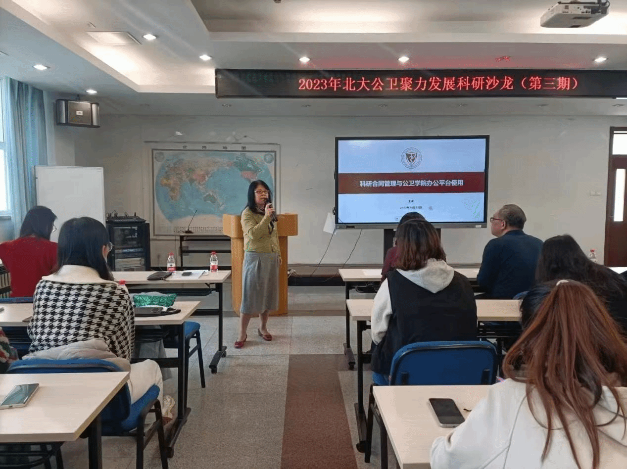 为使学院教师深入了解科研管理系统使用流程,规范科研合同用印申请平台填报,提高科研管理效率,10月23日,yl6809永利官网科研办、工会联合举办的科研系统填报培训沙龙活动在卫三教进行,各系(所、中心)教学秘书及40余名骨干教师参加培训。学院副院长王海俊教授、院长助理简伟研教授出席培训会,培训会由科研办主任高苏堤副教授主持,科研办王洋老师做了《科研合同管理与公卫学院办公平台使用培训》的报告。