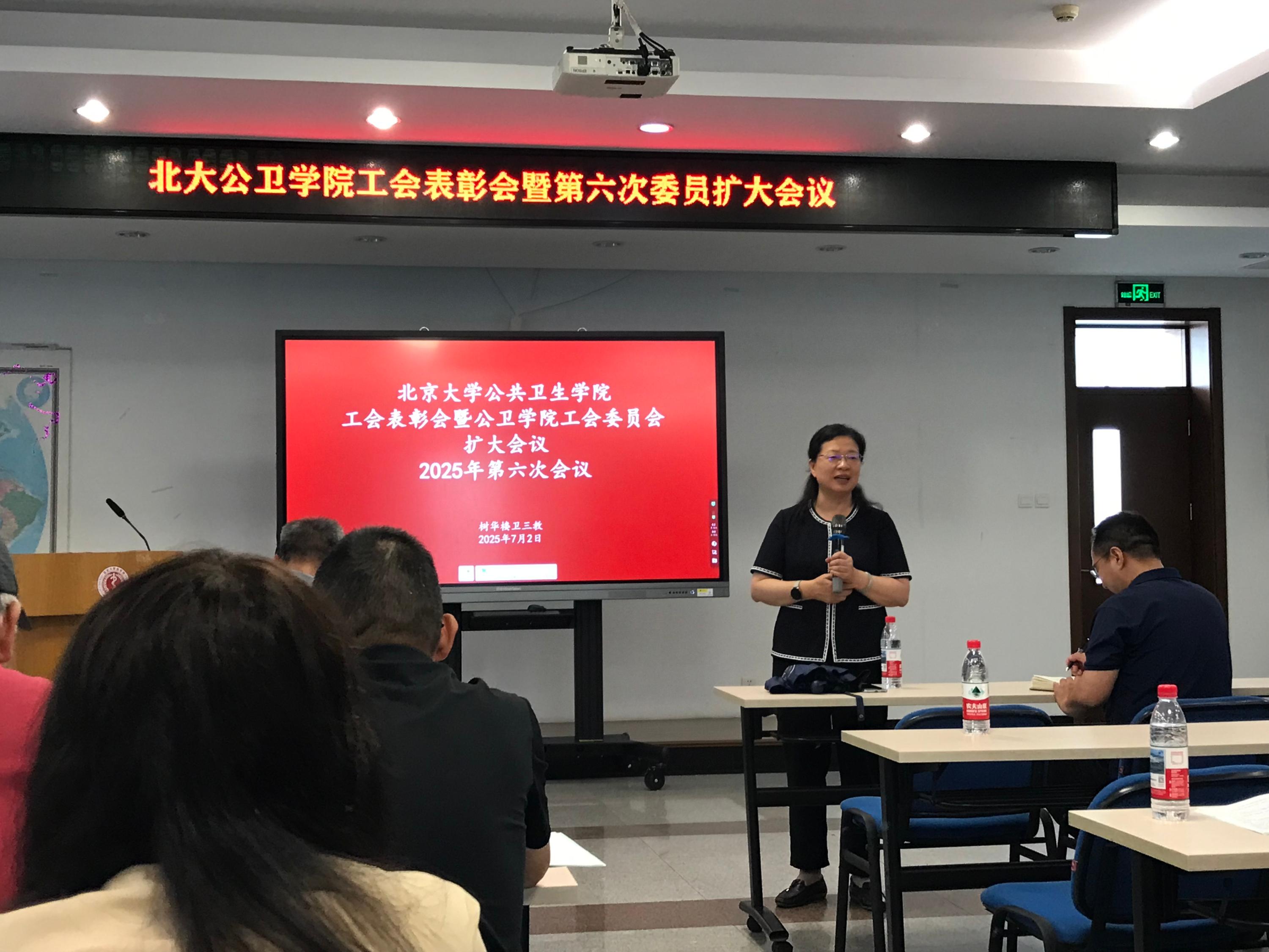 2025年7月2日下午,公卫学院工会委员和工会干部会议在树华楼卫三教召开,对学院近期工会工作进行总结,对下学期工会工作进行部署,同时对近年来离任工会干部进行感谢,对在工会工作中表现突出的积极分子进行表彰。公卫学院院长、医学部工会副主席(兼)、学院工会委员詹思延、工会干部以及受表彰的积极分子共40余人参加会议,会议由学院党委副书记、工会主席苏鸿主持。