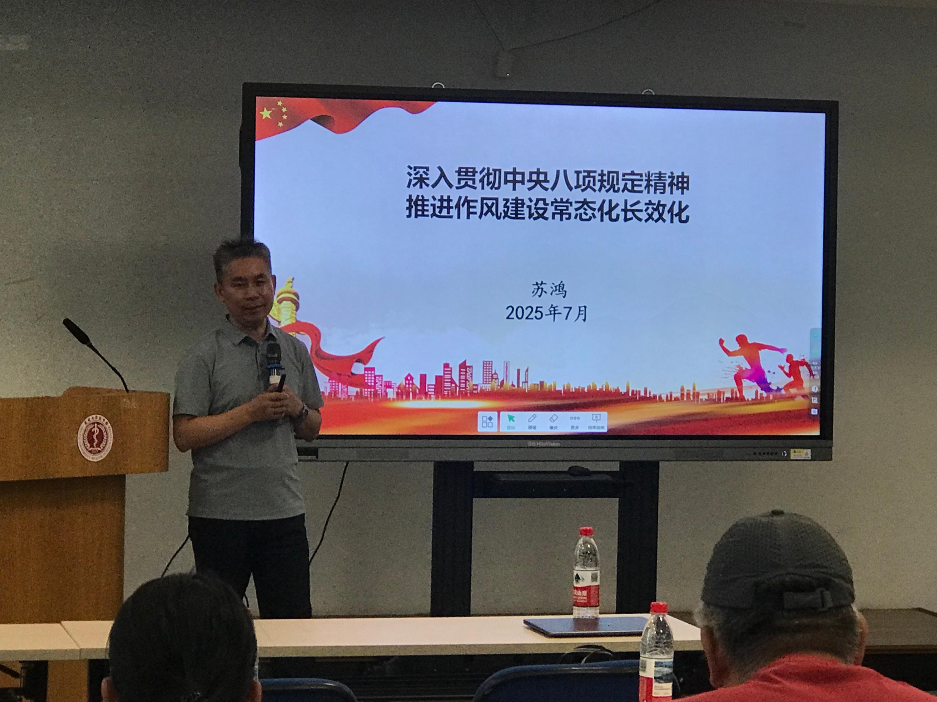 会议伊始,苏鸿副书记以《深入贯彻中央八项规定精神,推进作风建设常态化长效化》为题,为全体工会干部上专题党课。党课以《八项规定改变中国》为蓝本,指出党的十八大以来,习近平总书记和中央政治局带头立规矩作示范,从制定和落实中央八项规定开局破题,紧盯群众深恶痛绝、反映强烈的突出问题,以钉钉子精神纠治“四风”,以作风建设新气象赢得人民群众信任拥护,中央八项规定是党中央徙木立信之举,是新时代管党治党的标志性措施,全体工会干部要通过学习深刻认识中央八项规定取得的显著成效,同时,准确把握当前贯彻落实八项规定精神存在的突出问题,以实际行动贯彻中央八项规定精神。此外,苏鸿老师还介绍了近期高校领域师德师风违纪违法典型案例。