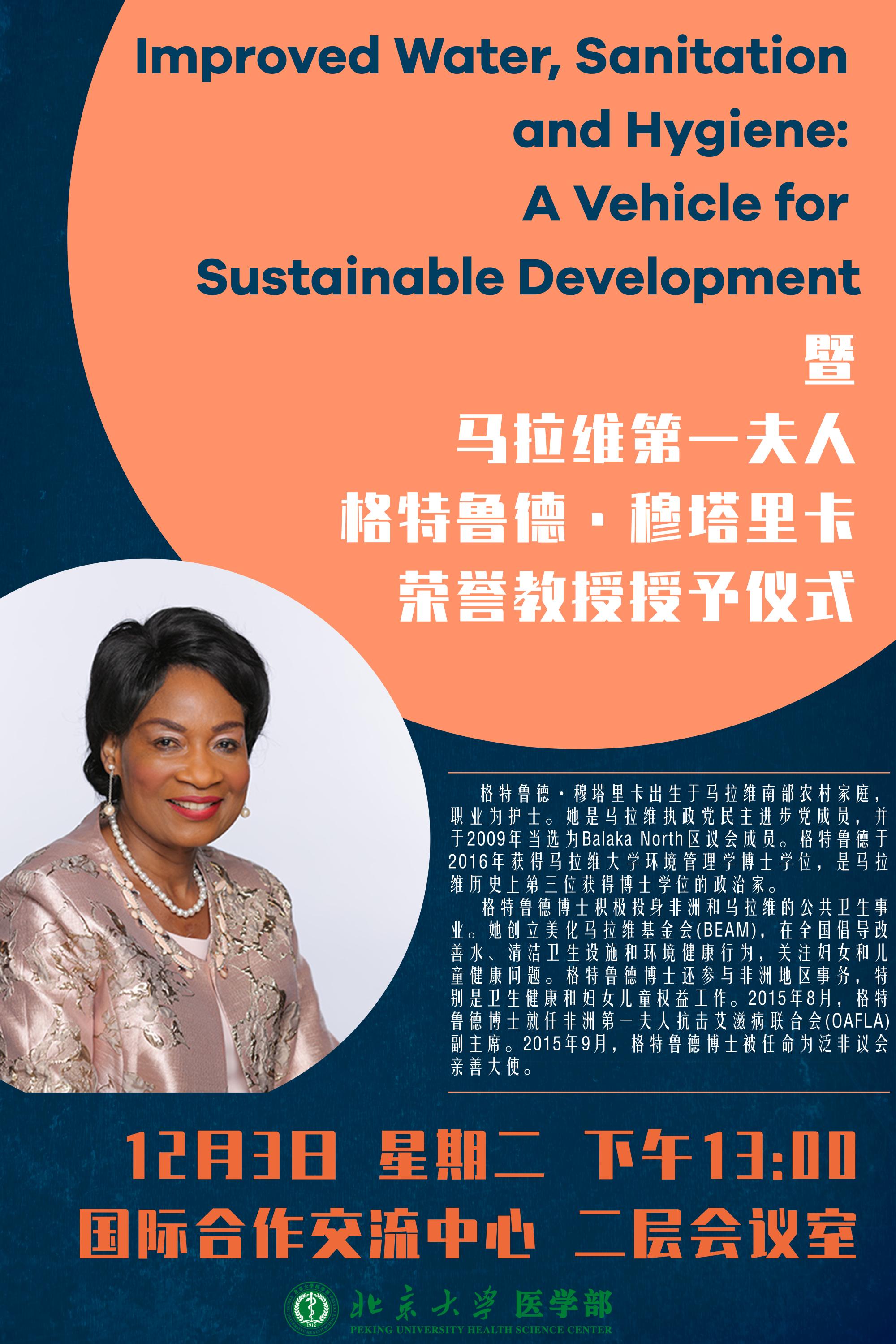 Improved Water, Sanitation and Hygiene: A Vehicle for Sustainable Development 暨马拉维第一夫人格特鲁德·穆塔里卡荣誉教授授予仪式