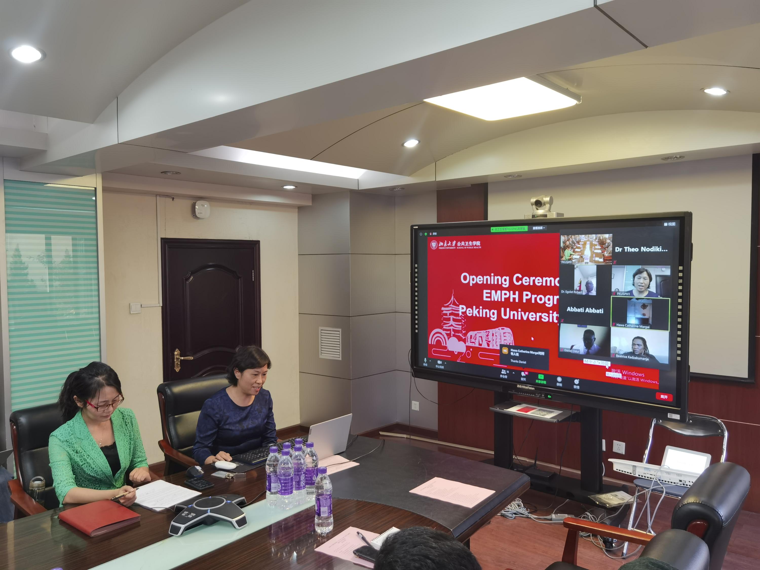 On the afternoon of September 24, 2020, the opening ceremony of the 2020 Executive Master of Public Health Program (EMPH) was held through video conference at the School of Public Health, Peking University. 15 international freshmen from different countries in Africa participated in the opening ceremony remotely. Leaders and teachers from the International Cooperation Office of Peking University Health Science Center, Department of Peking University Health Science Center, Peking University Graduate School, and Peking University School of Public Health attended the opening ceremony. Professor Xu Yajun from the School of Public Health served as the host of the opening ceremony.